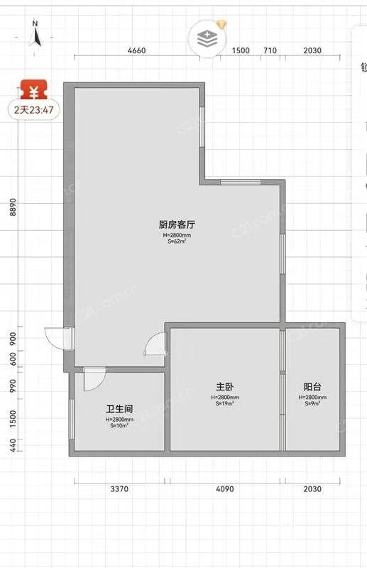 百榕1栋3楼 50平米 208万
