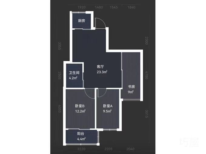 84平米 不占名额 两房一厅一卫 三朝南 有额外赠送区域 实际面积 95平 南北通透 二线看江 顶楼共用露台 随时看房有钥匙