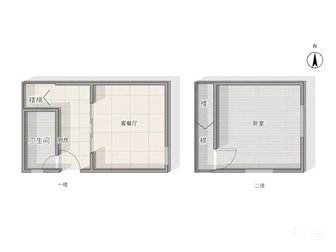 落地房1-2楼 43平米 两房一厅一卫 清爽出租装 随时看房有钥匙