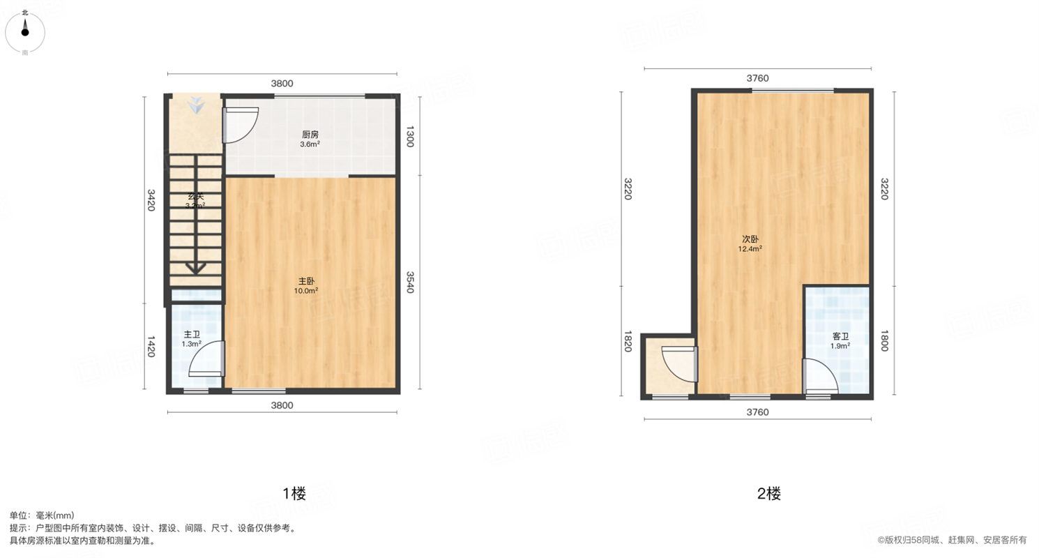 落地房1-2楼 40平米 两房一厅一卫 清爽出租装独门独户独栋 随时看房有钥匙