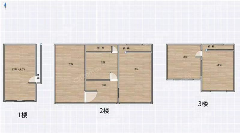 广场路正街店连屋1-3楼 47平米 158万 实际面积100平米 做店面出租
