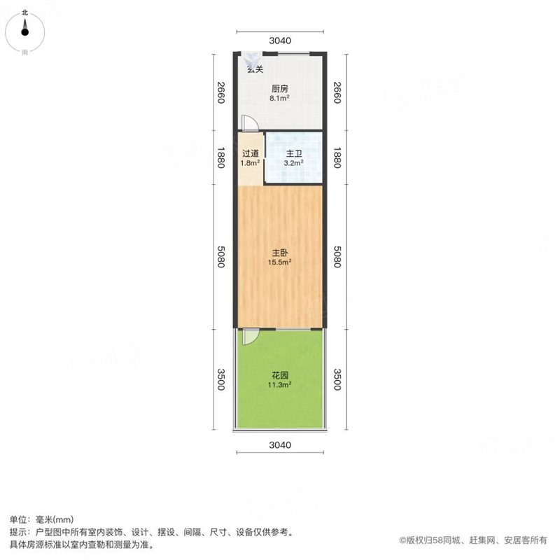 38平米独用院子 一房一厅一卫 清爽出租装 随时看房有钥匙