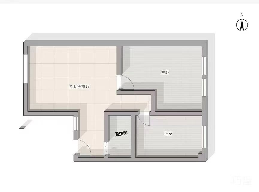 46平米 宿舍楼2楼 两房一厅一卫 清爽出租装 随时看房有钥匙